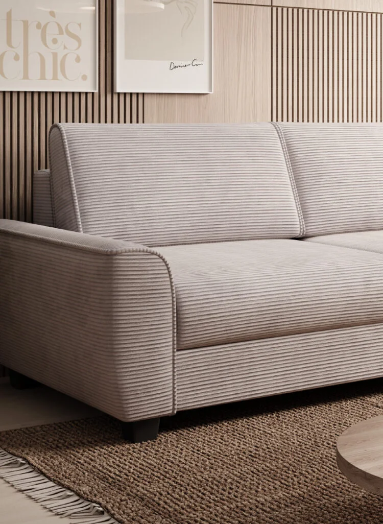 Táto moderná čalúnená rozkladacia pohovka Monza je ideálnym kusom nábytku pre všetky moderné izby. Od ostatných sa vyznačuje svojou praktickosťou. Pohovku môžete v okamihu zmeniť na manželskú posteľ. Je pokrytá odolnou látkou a je dokonale prispôsobená akémukoľvek štýlu nábytku.